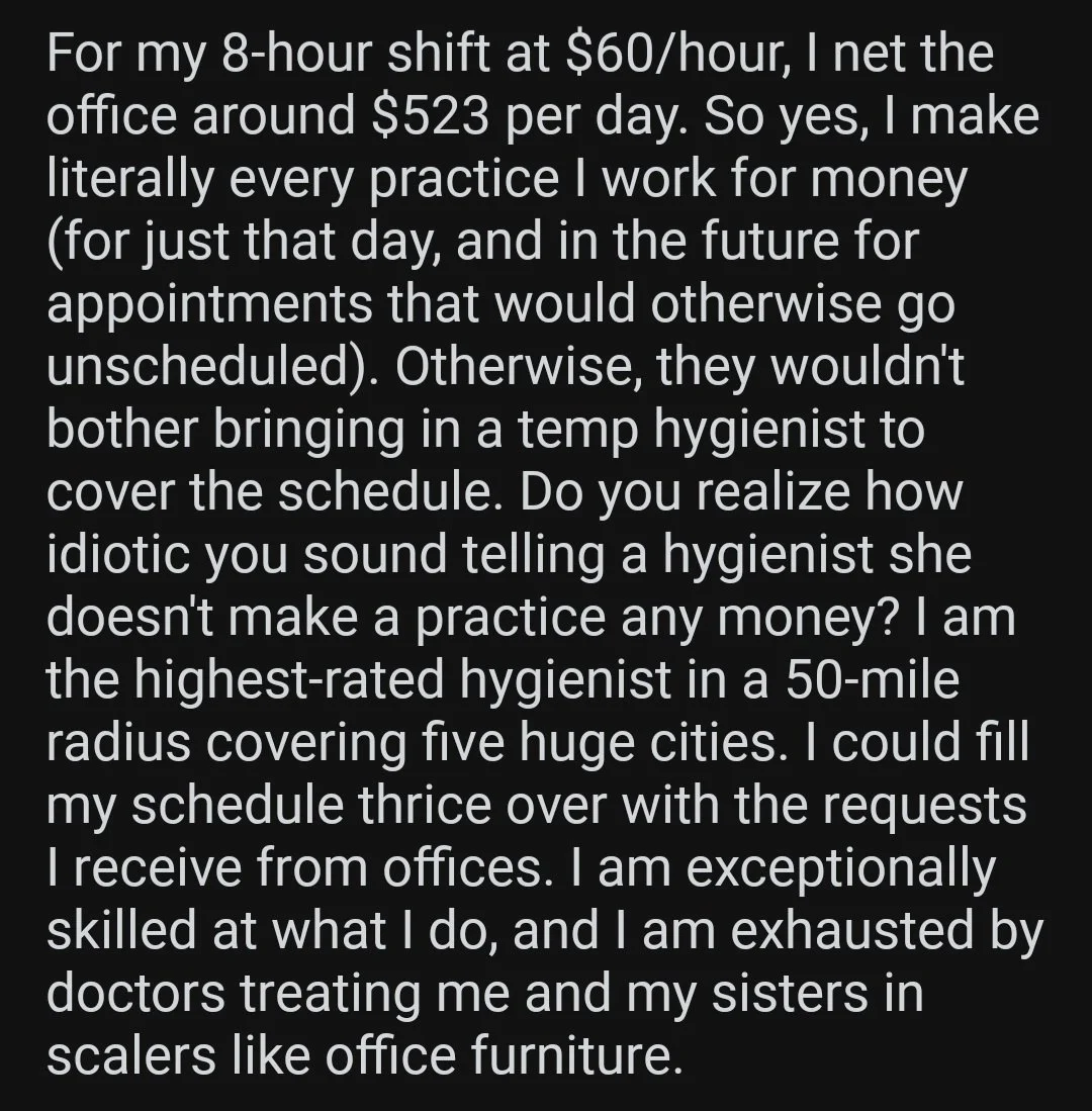 He said nothing after this, for which I was grateful. I'm so tired of men like him, I could spit… then make him suck it up without an assistant to do it for him. Snide dipshit. 😠