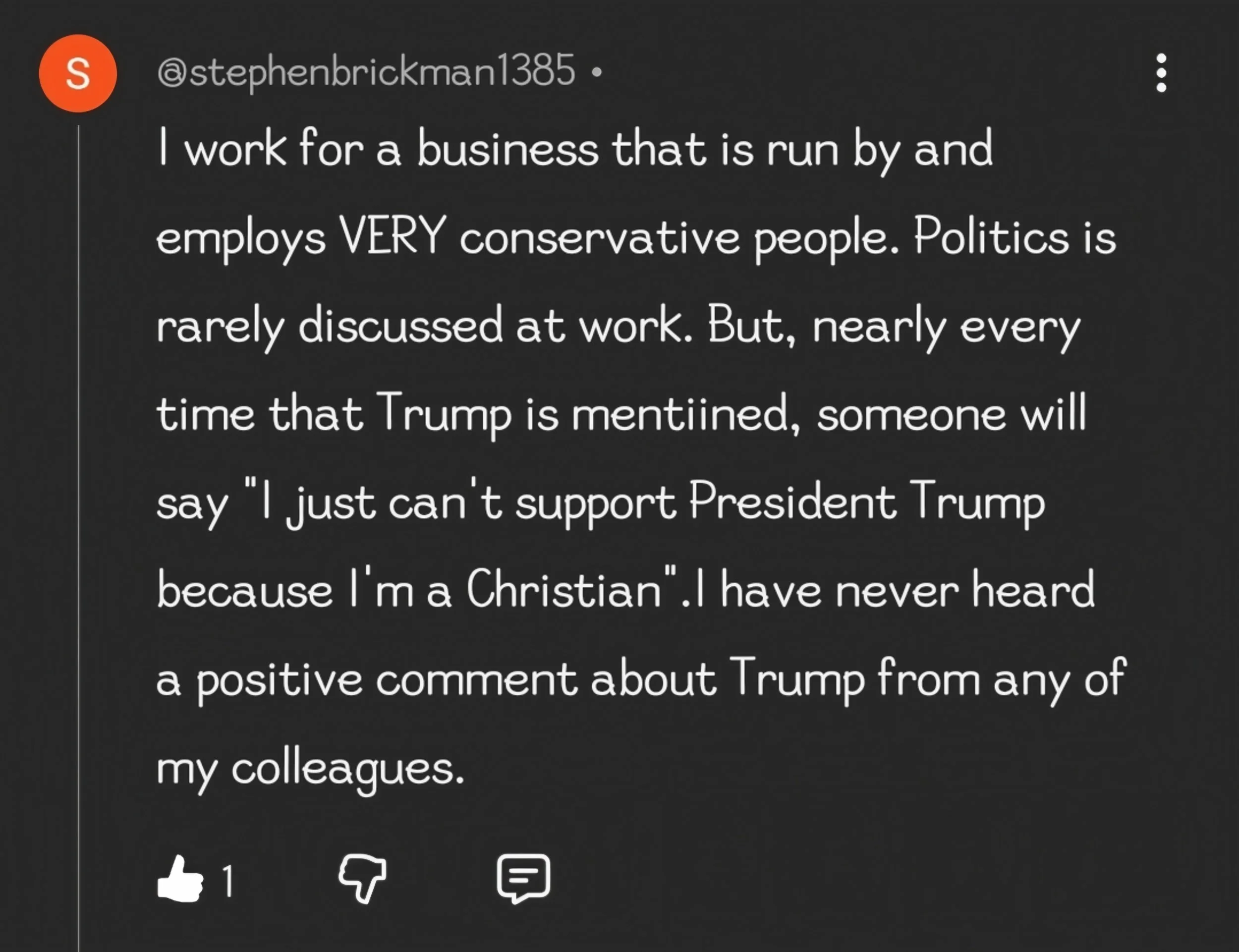 So, I thought I would share this anecdote from a fellow viewer who gave me a rare morsel of optimism, however minuscule I know the demographic whom he mentions is among American voters. Enjoy.